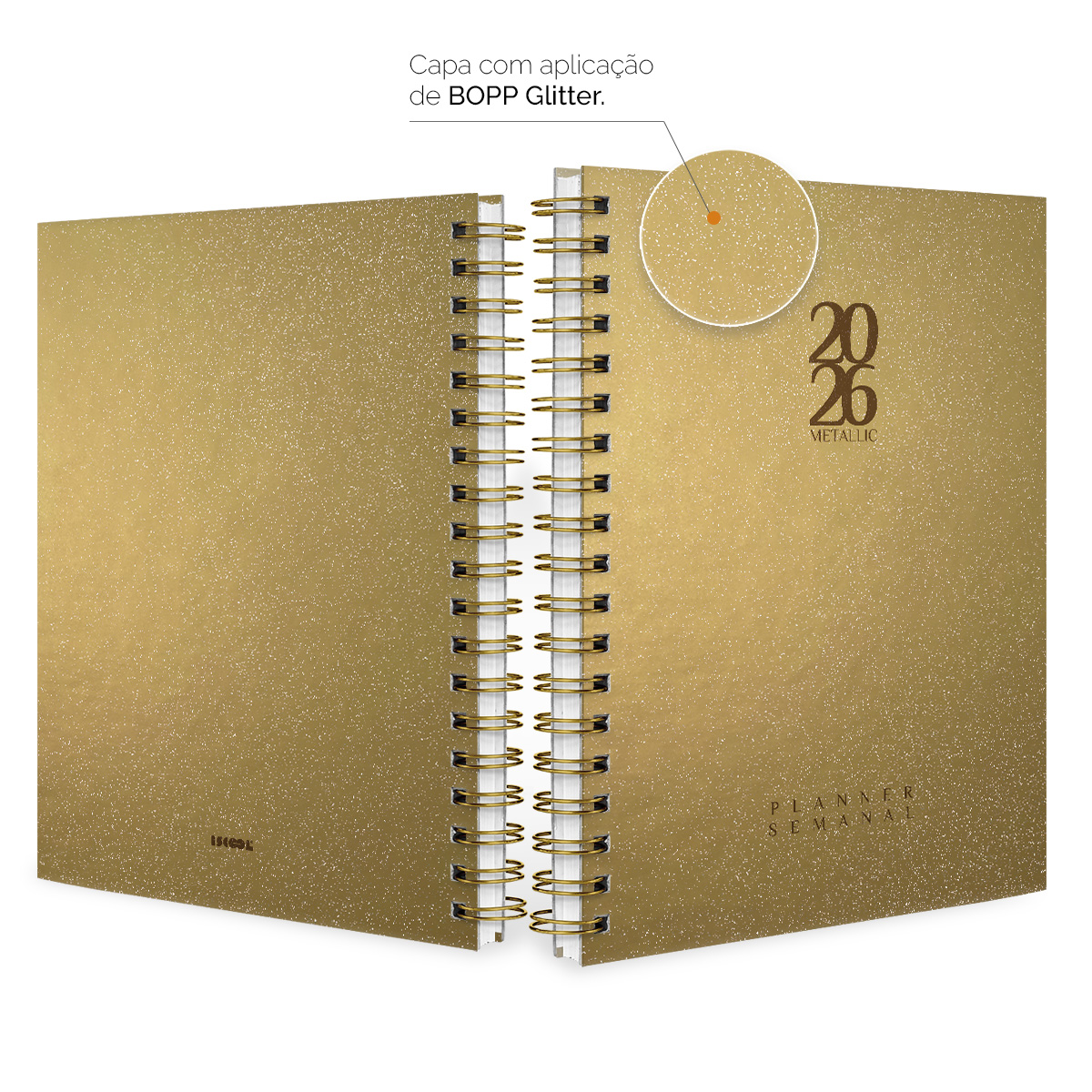 Agenda Planner Semanal 2026 Solid Glitter Metallic Ouro