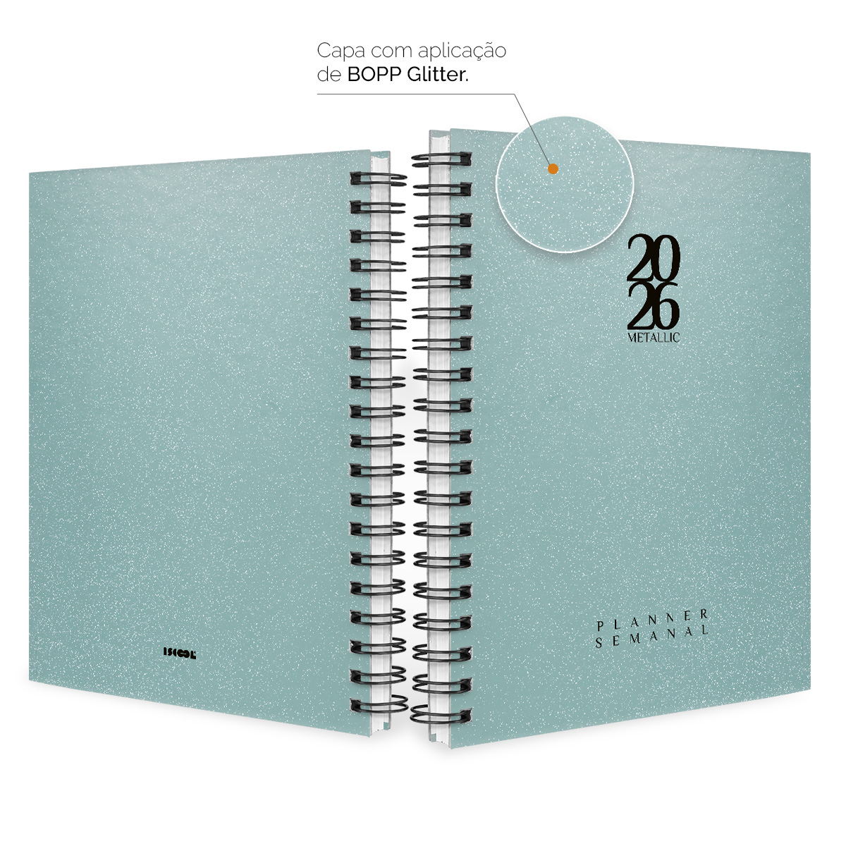 Agenda Planner Semanal 2026 Solid Glitter Metallic Turquesa