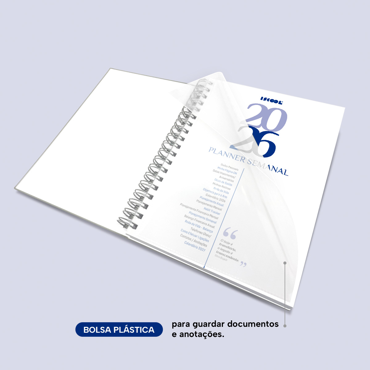 A agenda planner semanal plus da Iscool é perfeita para uso diário, seja na empresa, escritório, salão, clínica, escola, faculdade ou até mesmo em casa. Com ela, você pode agendar compromissos, eventos, tarefas, lembretes e contatos, tornando sua rotina mais funcional e produtiva.