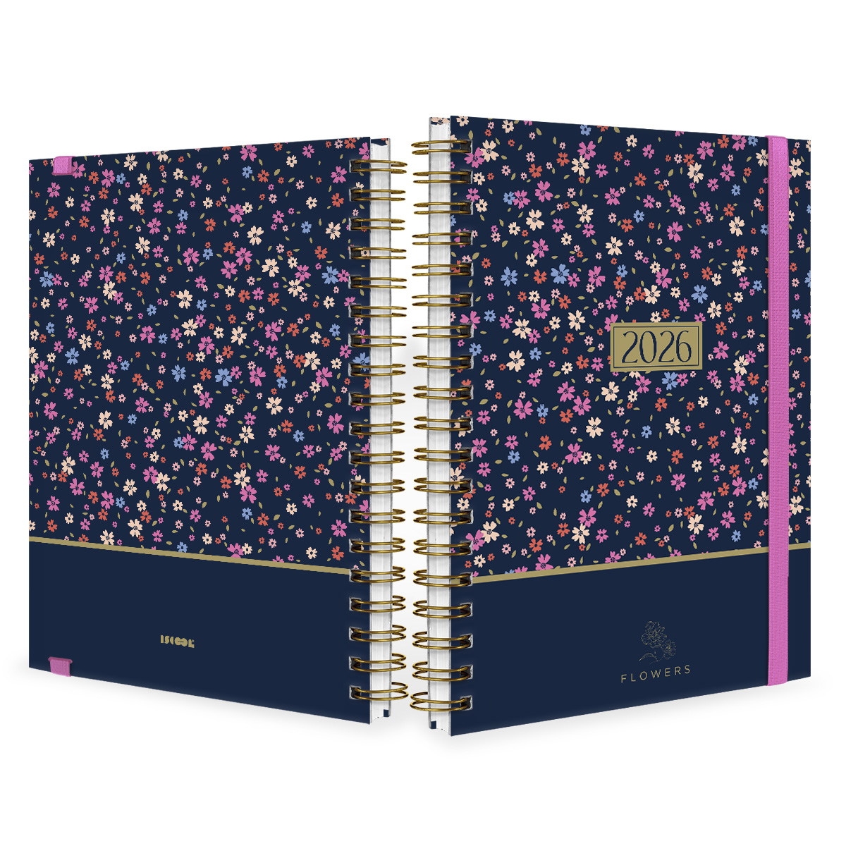 Agenda Planner Semanal Plus 2026 Flower Field Azul Marinho