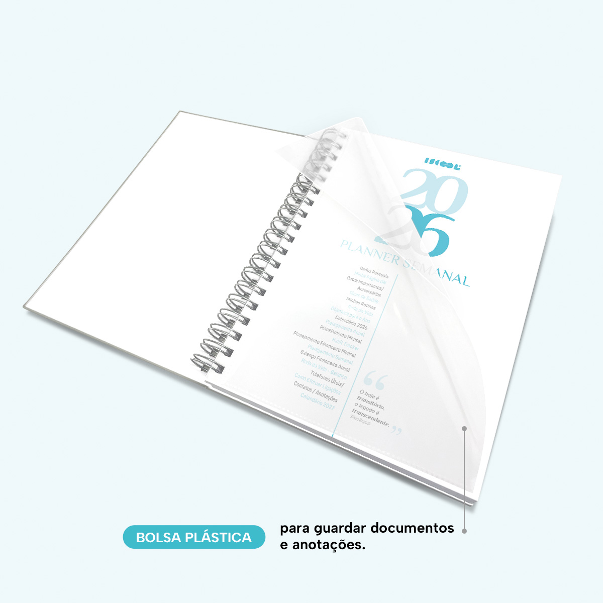 A agenda planner semanal plus da Iscool é perfeita para uso diário, seja na empresa, escritório, salão, clínica, escola, faculdade ou até mesmo em casa. Com ela, você pode agendar compromissos, eventos, tarefas, lembretes e contatos, tornando sua rotina mais funcional e produtiva.