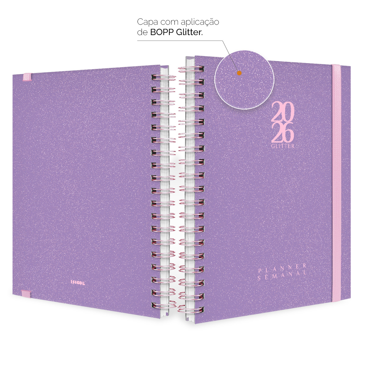 Agenda Planner Semanal Plus 2026 Solid Glitter Cores Lilás