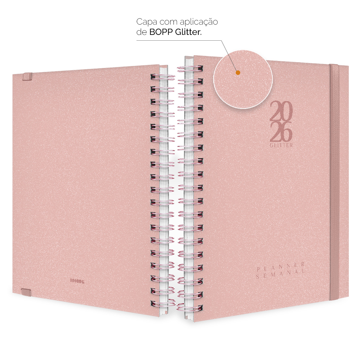 Agenda Planner Semanal Plus 2026 Solid Glitter Cores Rosê