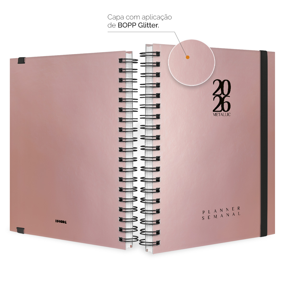 Agenda Planner Semanal Plus 2026 Solid Metallic Rose Gold