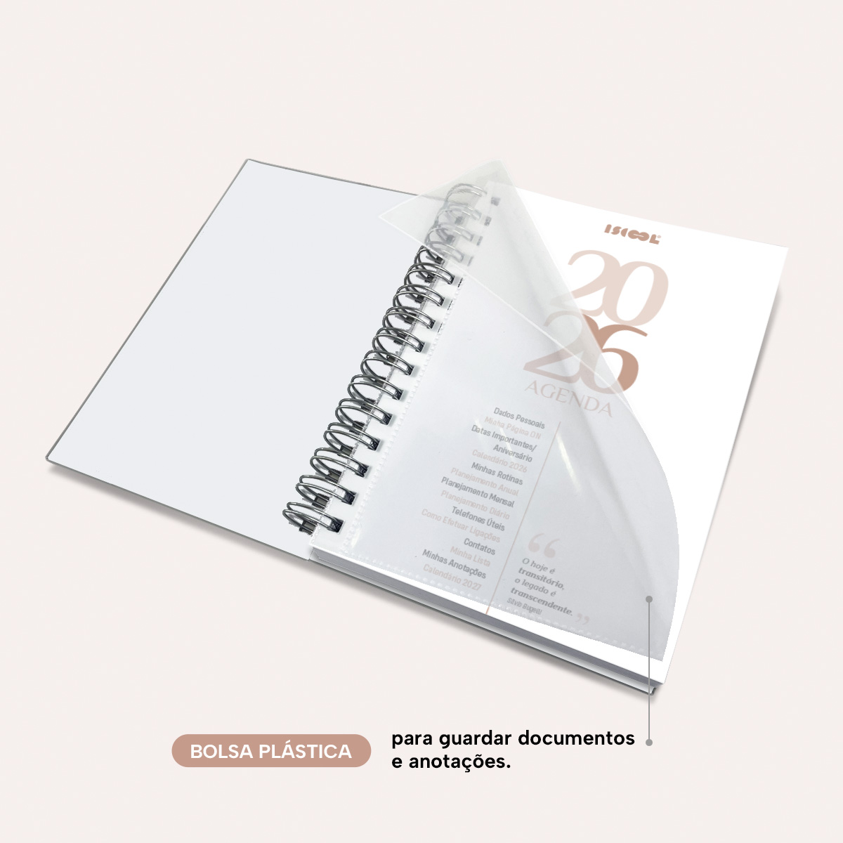 A cada mês, você pode contar com uma página de planejamento mensal, facilitando a visualização de suas principais anotações. Além disso, cada página possui indicações de feriados, estações do ano, calendário lunar, número da semana, frases inspiradoras e um calendário linear do mês no rodapé.