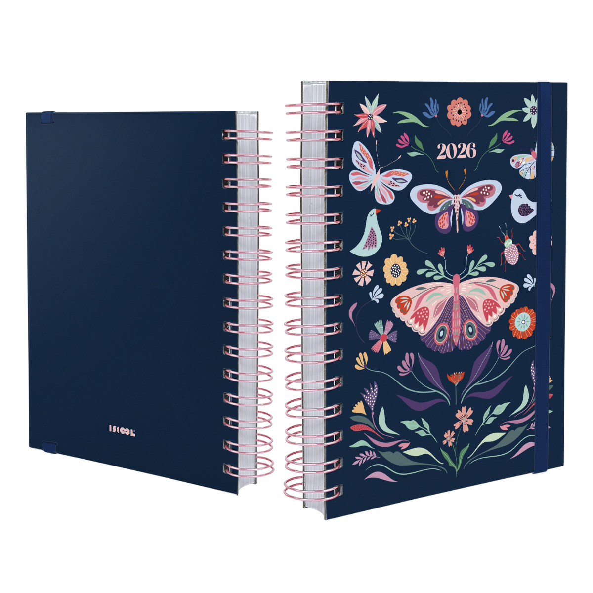 Agenda Plus 2026 Butterfly Marinho Rosa