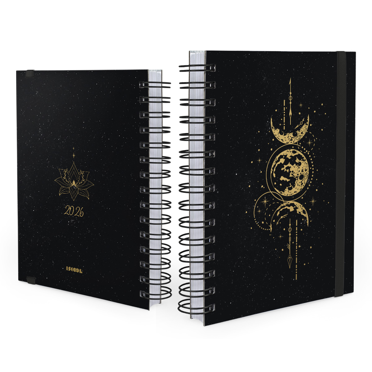 A cada mês, você pode contar com uma página de planejamento mensal, facilitando a visualização de suas principais anotações. Além disso, cada página possui indicações de feriados, estações do ano, calendário lunar, número da semana, frases inspiradoras e um calendário linear do mês no rodapé.