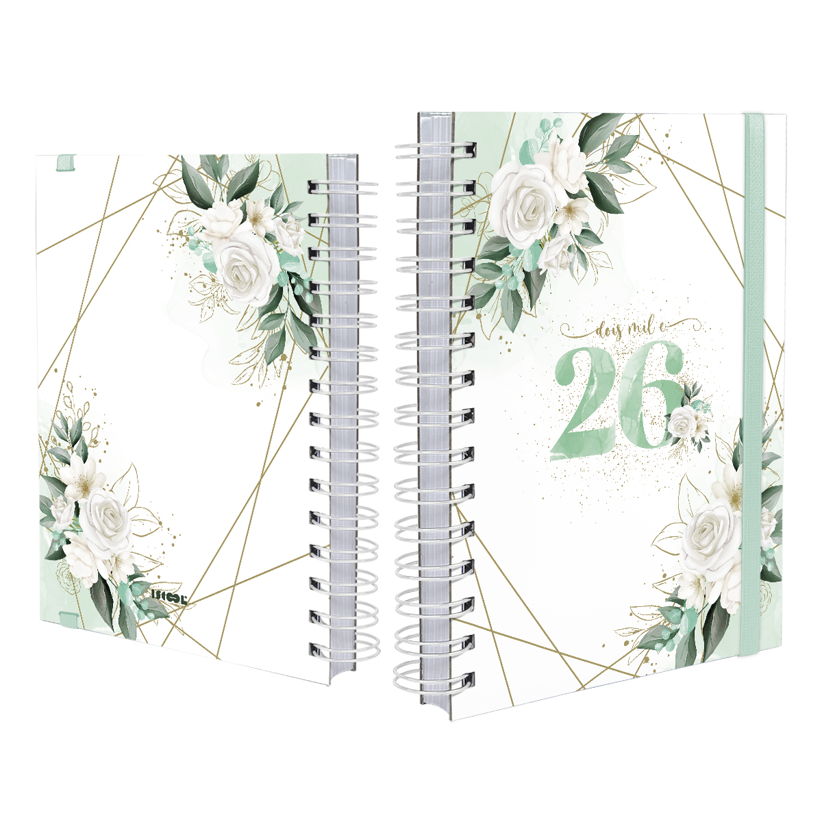Agenda Plus 2026 Floral Flores Verde e Branco
