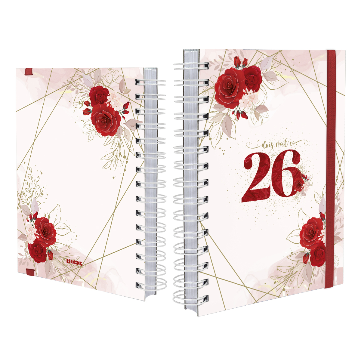 Agenda Plus 2026 Floral Flores Vermelho e Branco