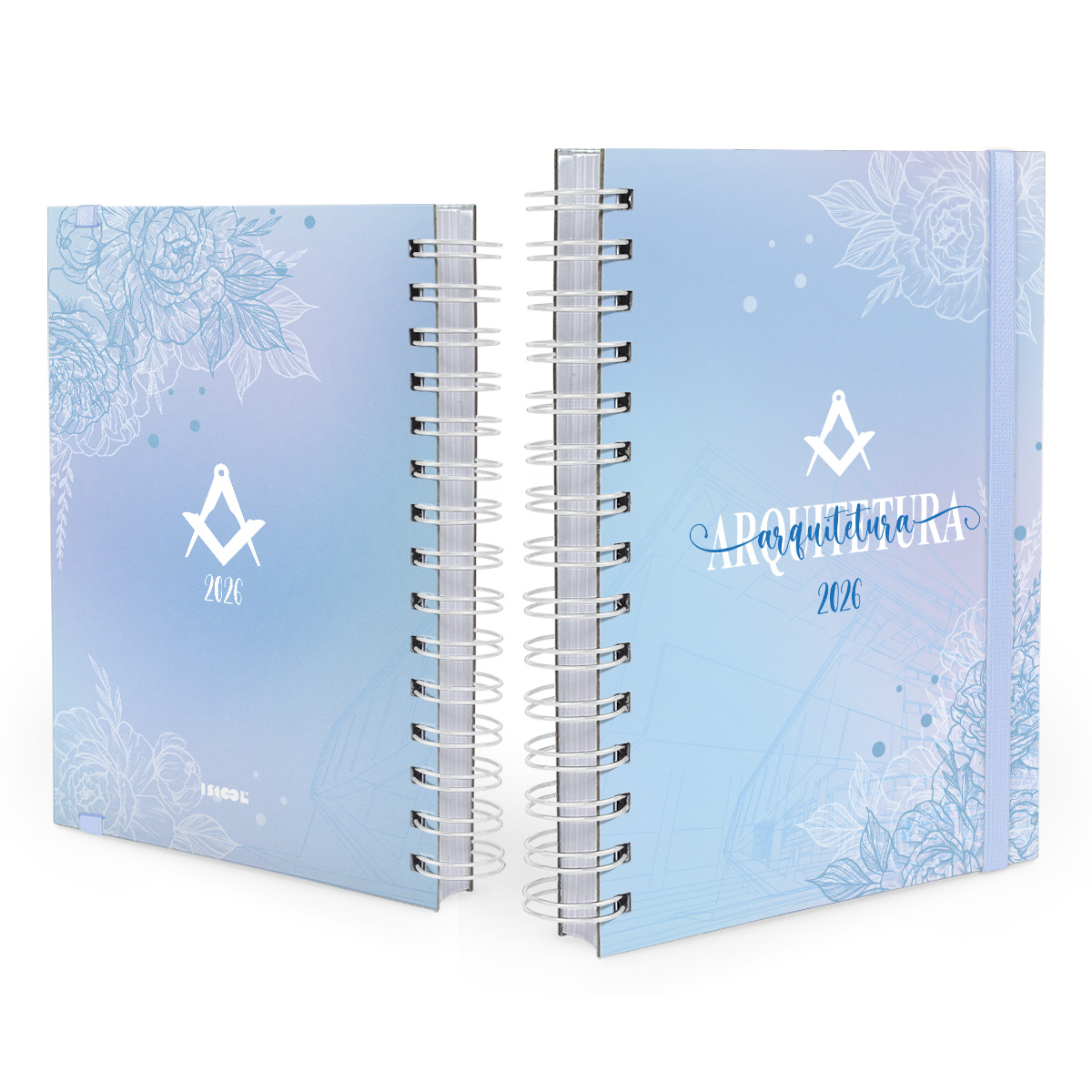 Agenda Plus 2026 Profissões Floral Arquitetura Azul