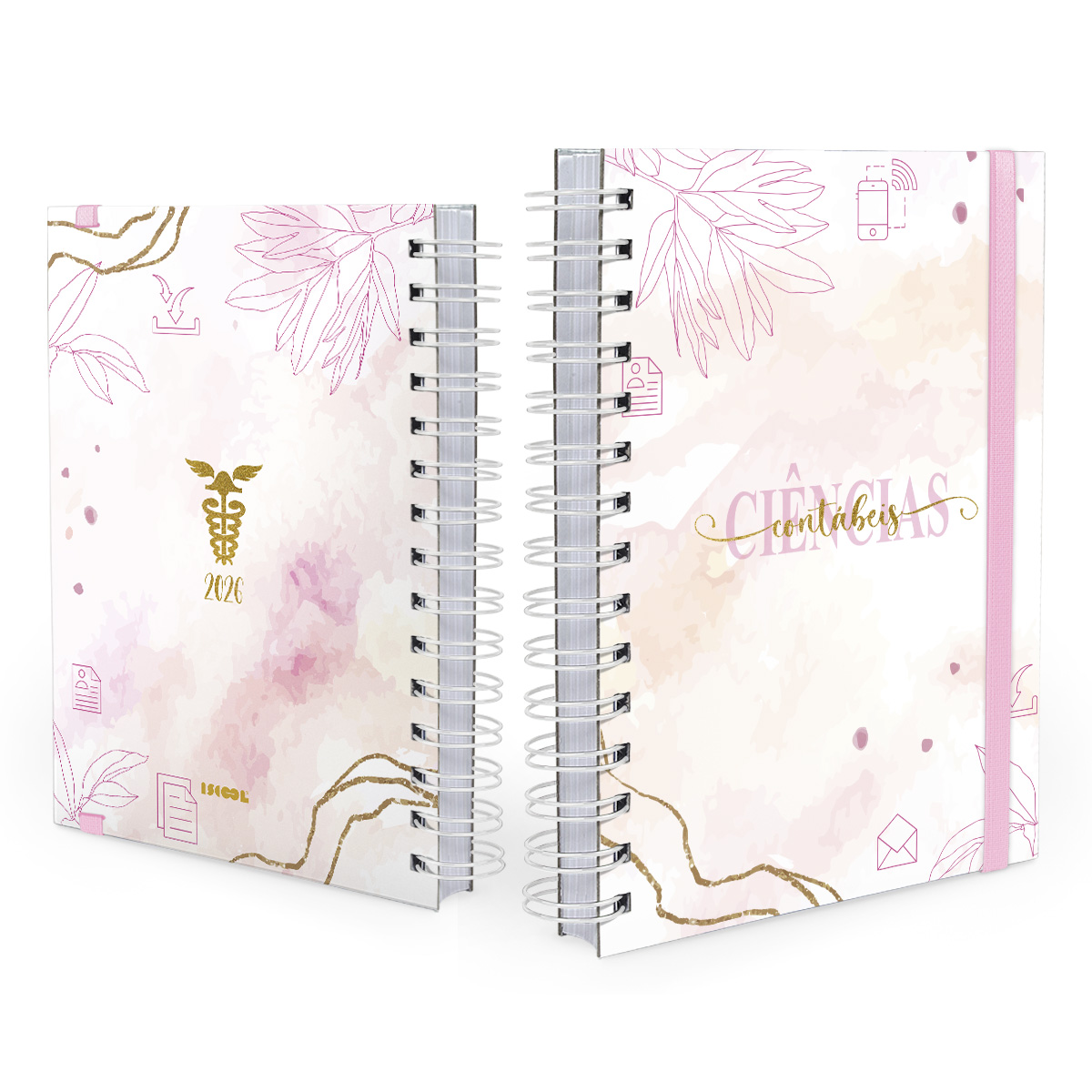 Agenda Plus 2026 Profissões Floral Ciências Contábeis Rosa
