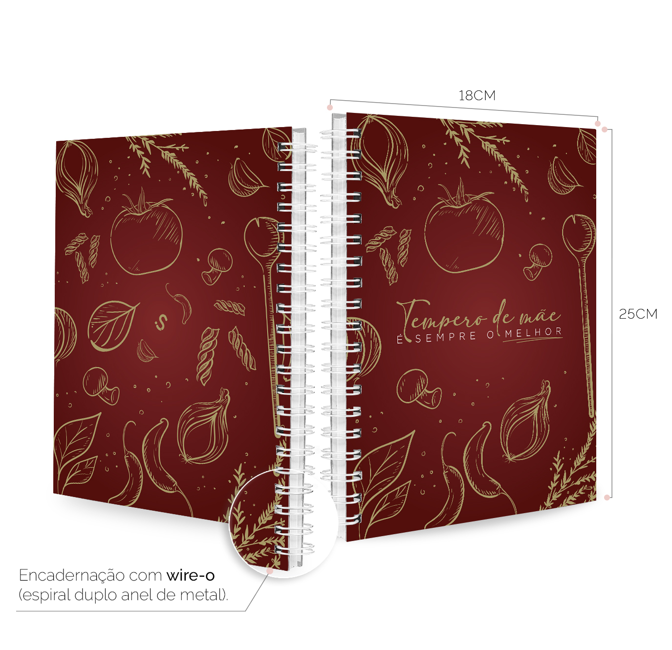 Além do índice para melhor localização das suas receitas, nas páginas iniciais separamos as melhores dicas que te ajudarão a se tornar um “master chef” na cozinha! São elas: A temperatura ideal, a medida certa (copos, xícaras e colheres), a conversão de medidas, o congelamento, os pontos da carne, os cortes (bovino, frango, suíno e peixes), as ervas e especiarias, as frutas e hortaliças, os vinhos, os queijos, as facas, as panelas, as formas, as taças e ainda as instruções de como preparar a mesa perfeita! É o mais completo caderno de anotações de suas receitas do mercado.