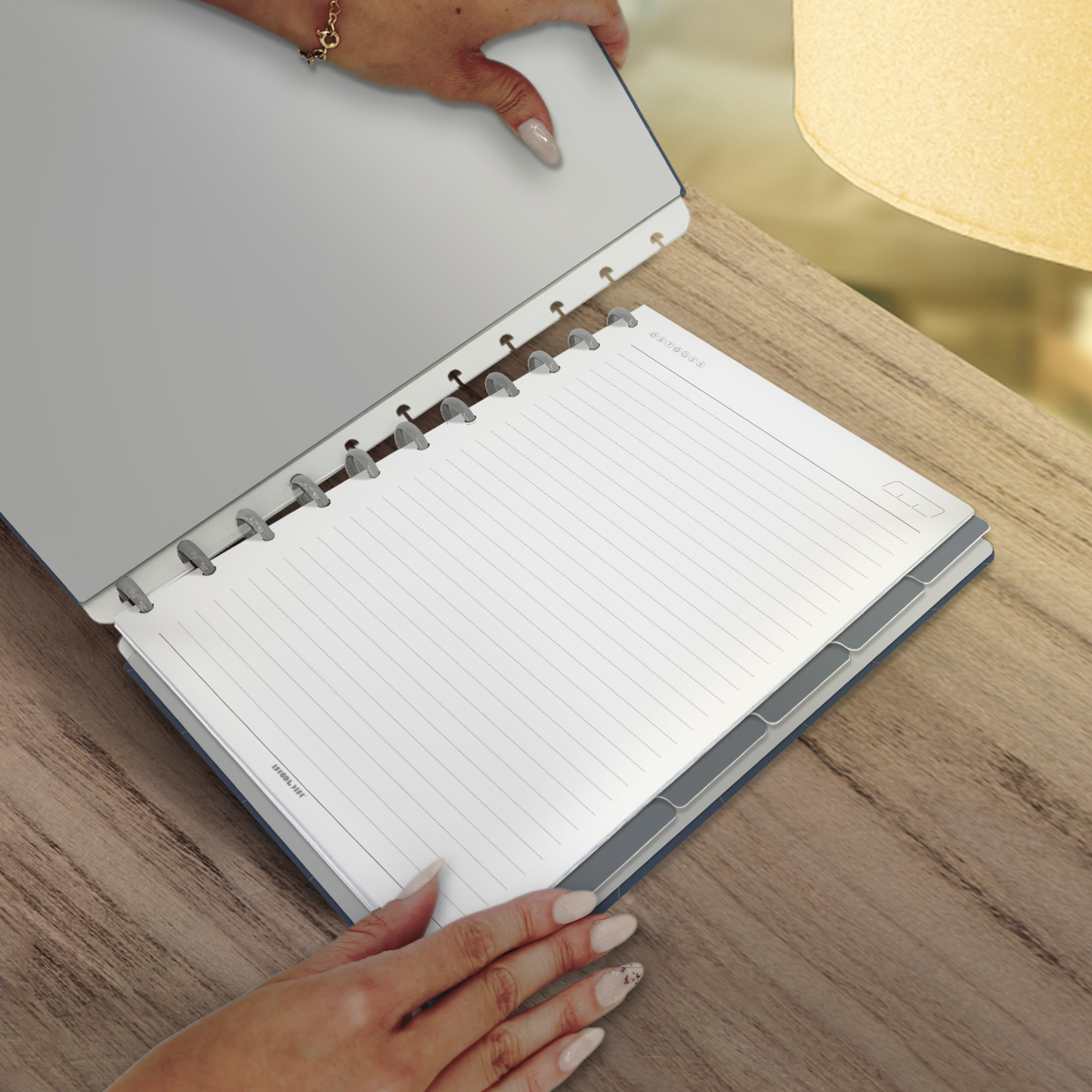 Com furos no formato de "cogumelo", é compatível com outros fabricantes de cadernos de disco, inclusive da marca Caderno Inteligente®.