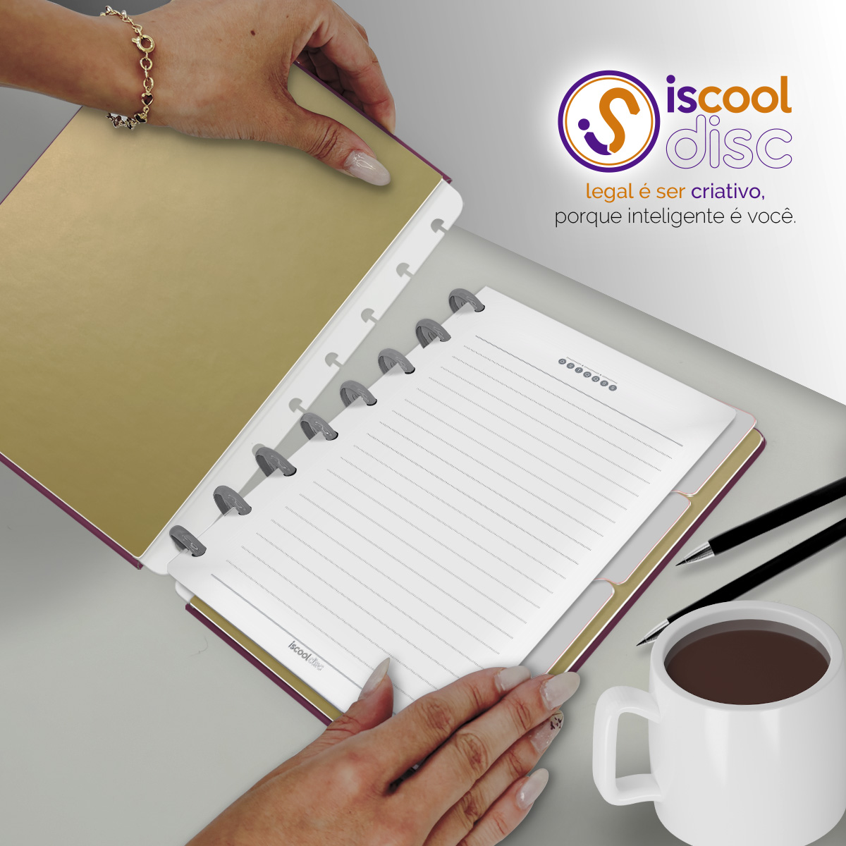 Com furos no formato de "cogumelo", é compatível com outros fabricantes de cadernos de disco, inclusive da marca Caderno Inteligente®.