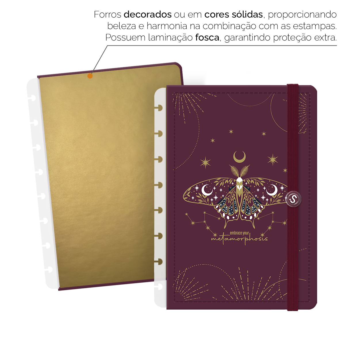 - Forros decorados ou em cores sólidas, com laminação fosca, garantem proteção extra.