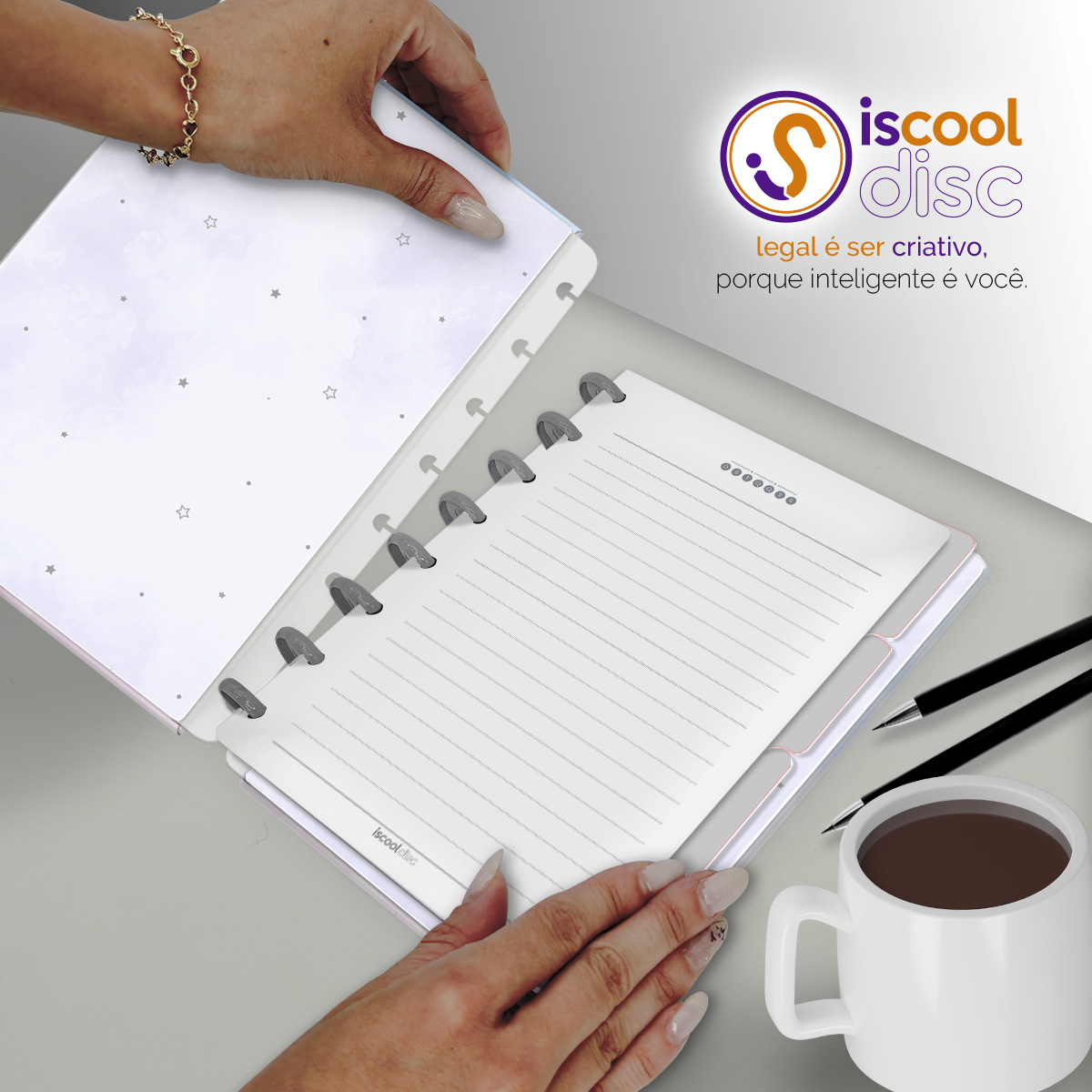 Com furos no formato de "cogumelo", é compatível com outros fabricantes de cadernos de disco, inclusive da marca Caderno Inteligente®.