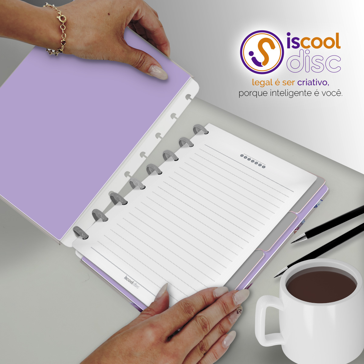 Com furos no formato de "cogumelo", é compatível com outros fabricantes de cadernos de disco, inclusive da marca Caderno Inteligente®.
