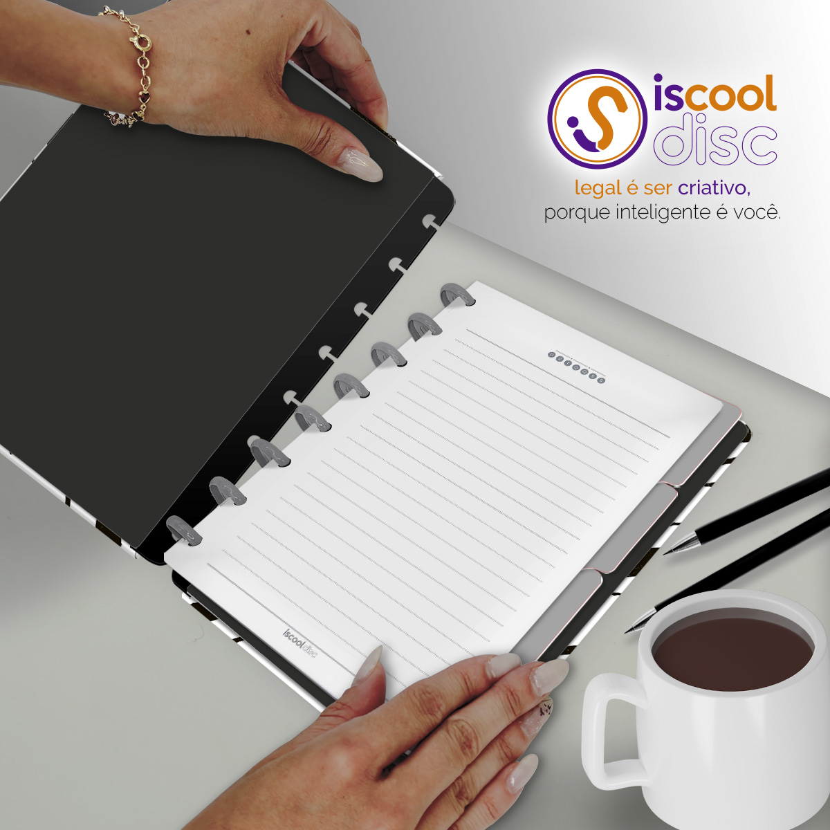 Com furos no formato de "cogumelo", é compatível com outros fabricantes de cadernos de disco, inclusive da marca Caderno Inteligente®.