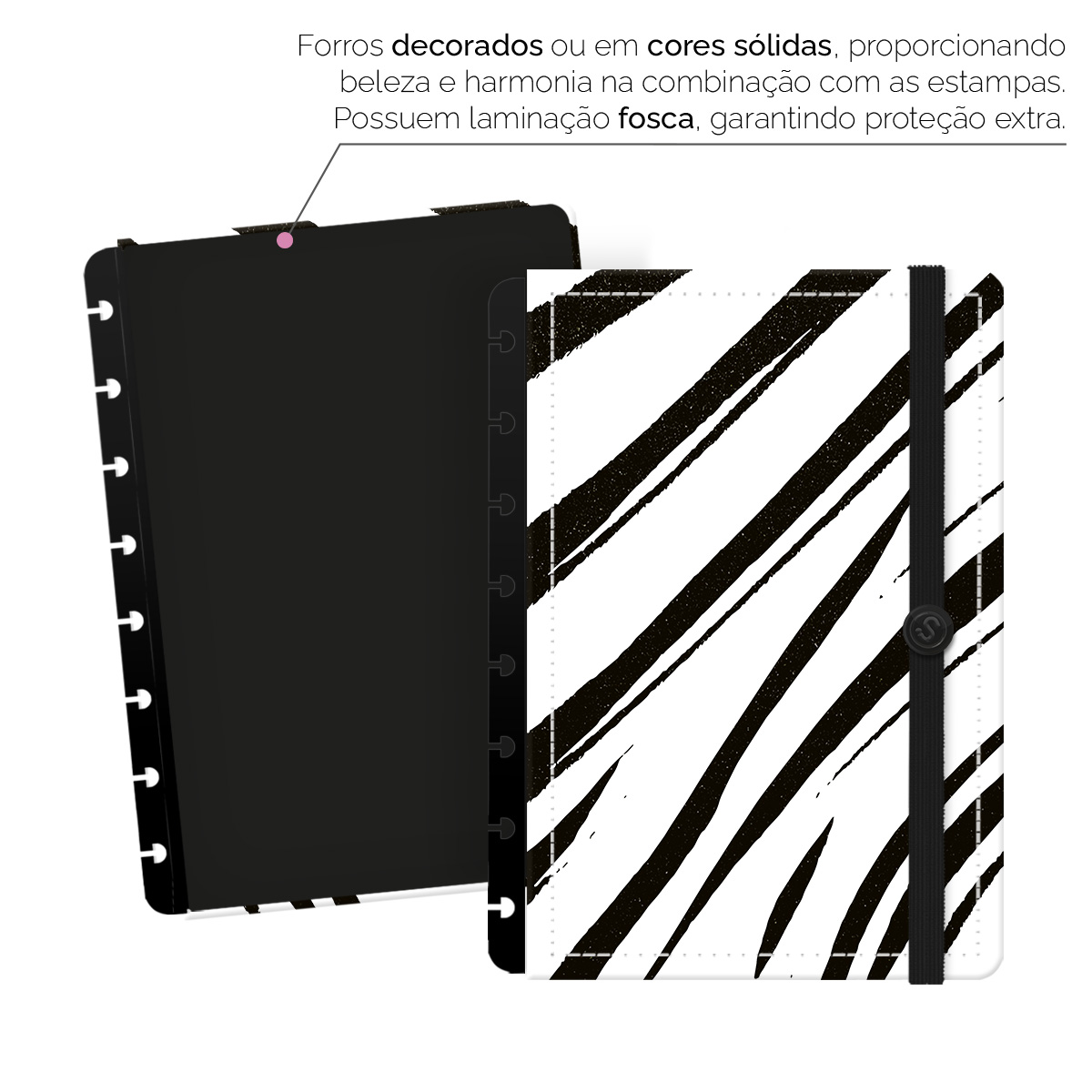 - Forros decorados ou em cores sólidas, com laminação fosca, garantem proteção extra.