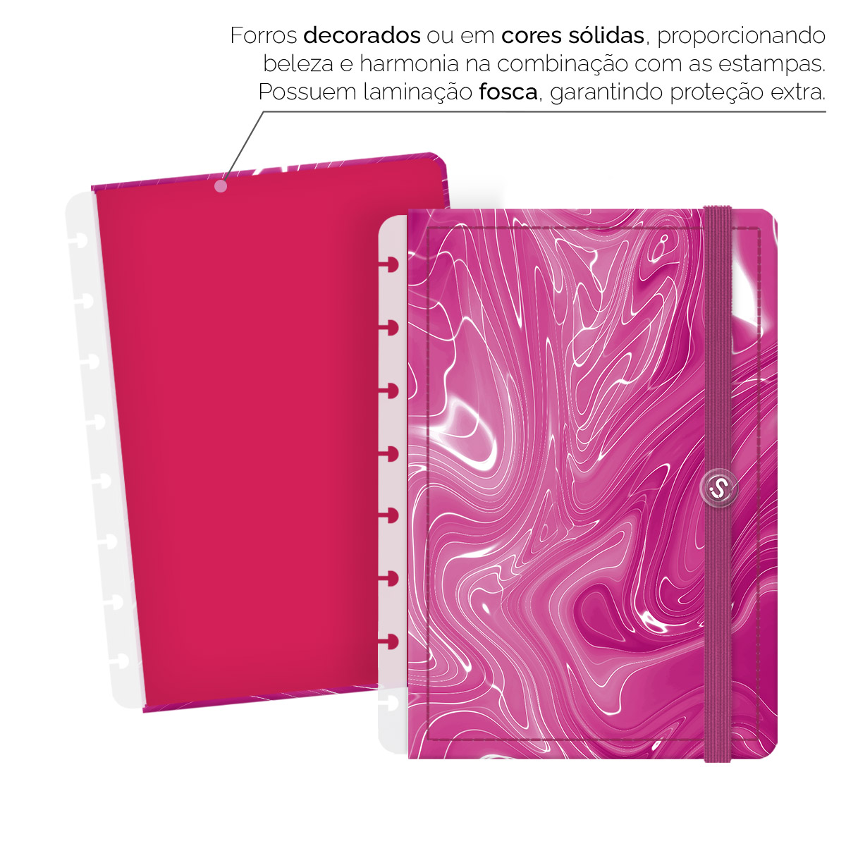 - Forros decorados ou em cores sólidas, com laminação fosca, garantem proteção extra.