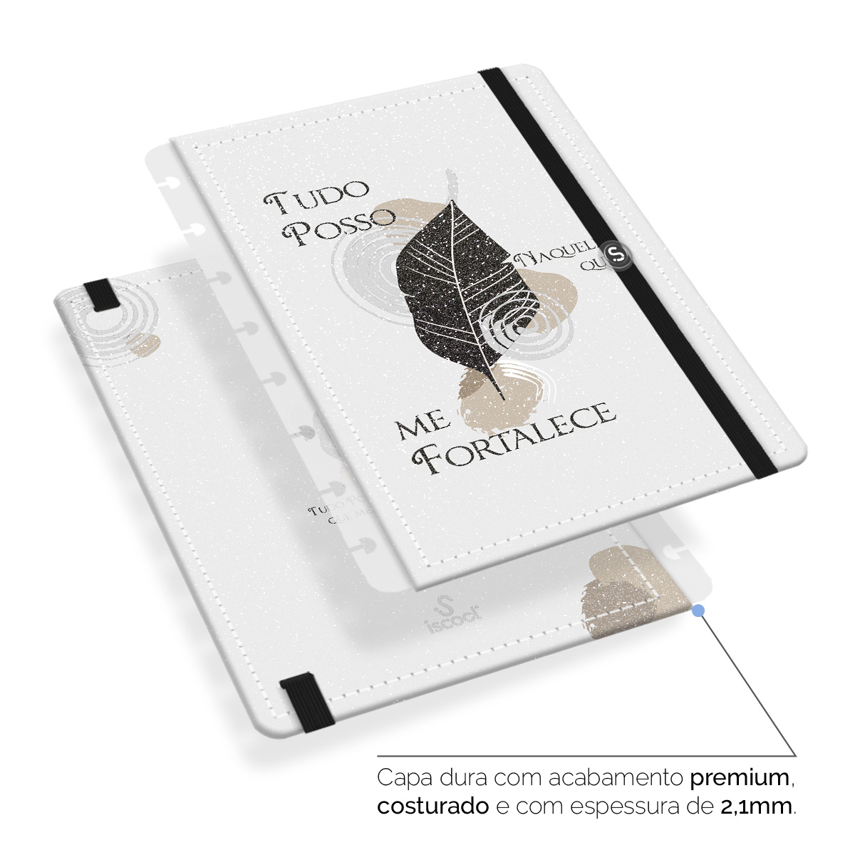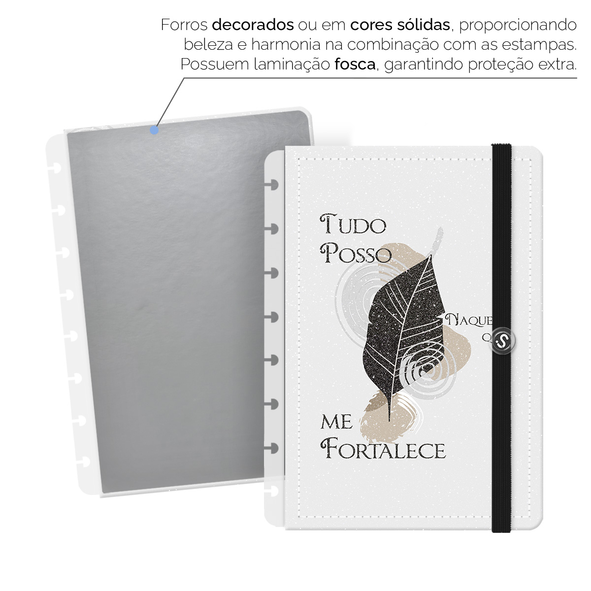 - Capa dura com acabamento premium, costurada e com espessura de 2,1 mm.
