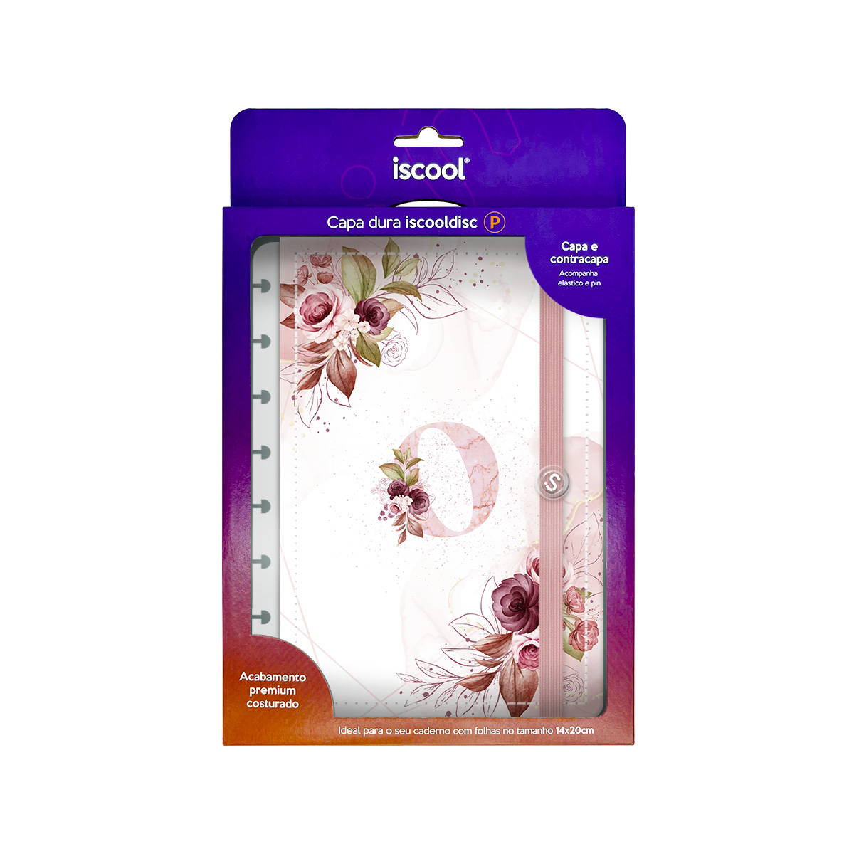 Capa e Contracapa Iscool Disc Monograma Floral Branco E Rosa Letra O