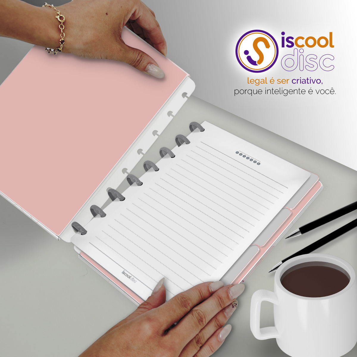 Com furos no formato de "cogumelo", é compatível com outros fabricantes de cadernos de disco, inclusive da marca Caderno Inteligente®.