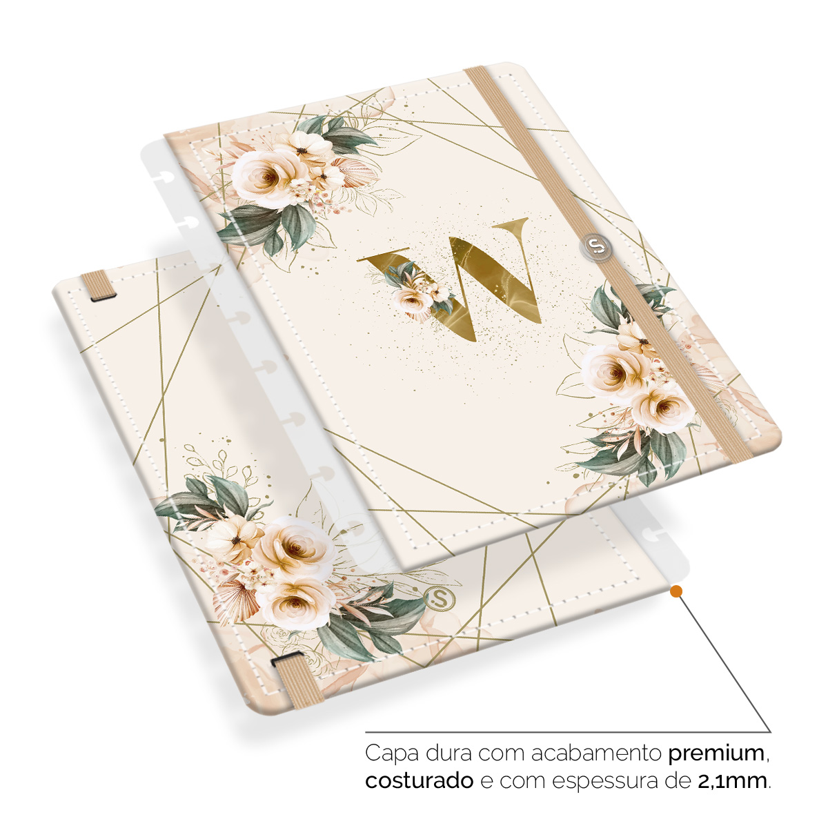 - Capa dura com acabamento premium, costurada e com espessura de 2,1 mm.
