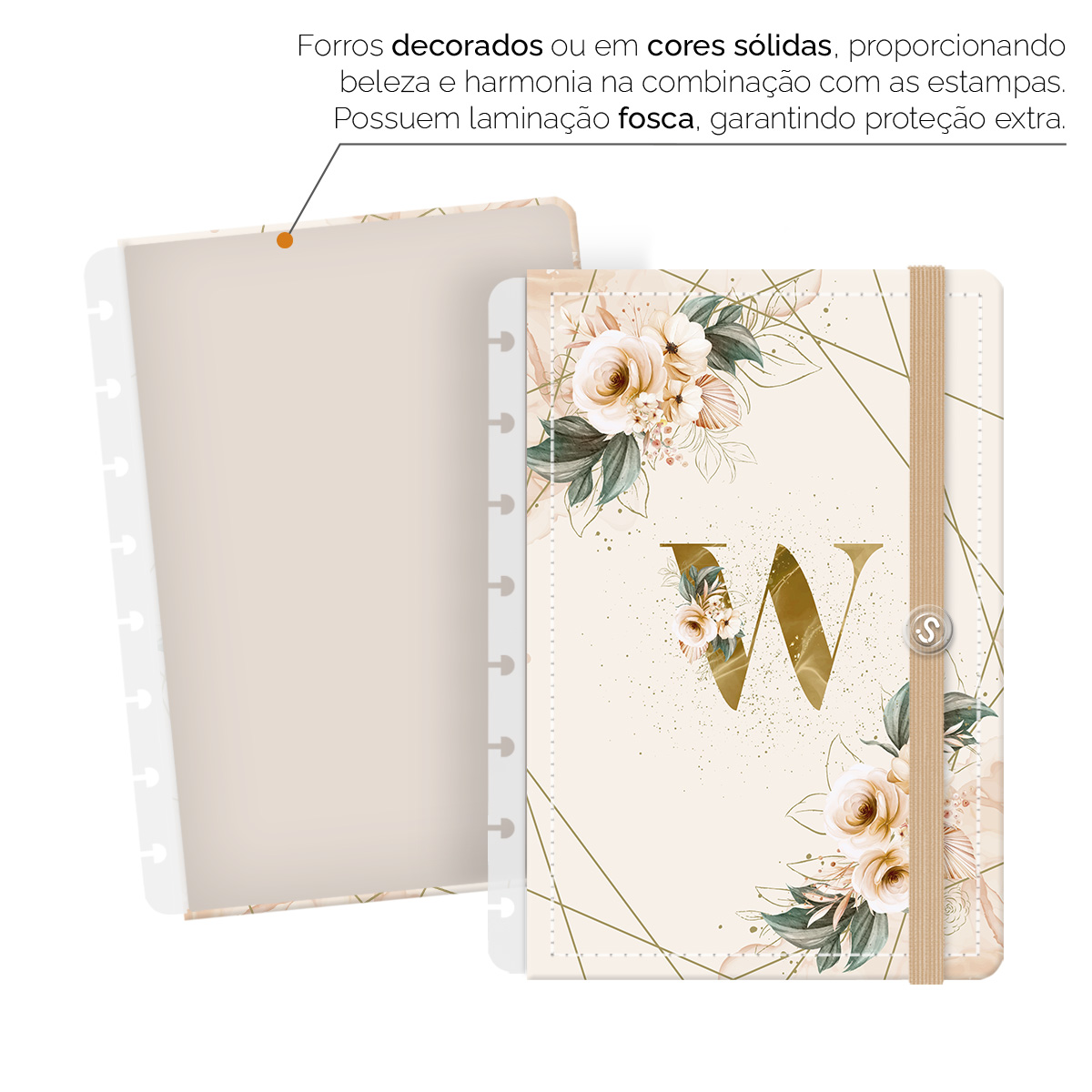 - Forros decorados ou em cores sólidas, com laminação fosca, garantem proteção extra.
