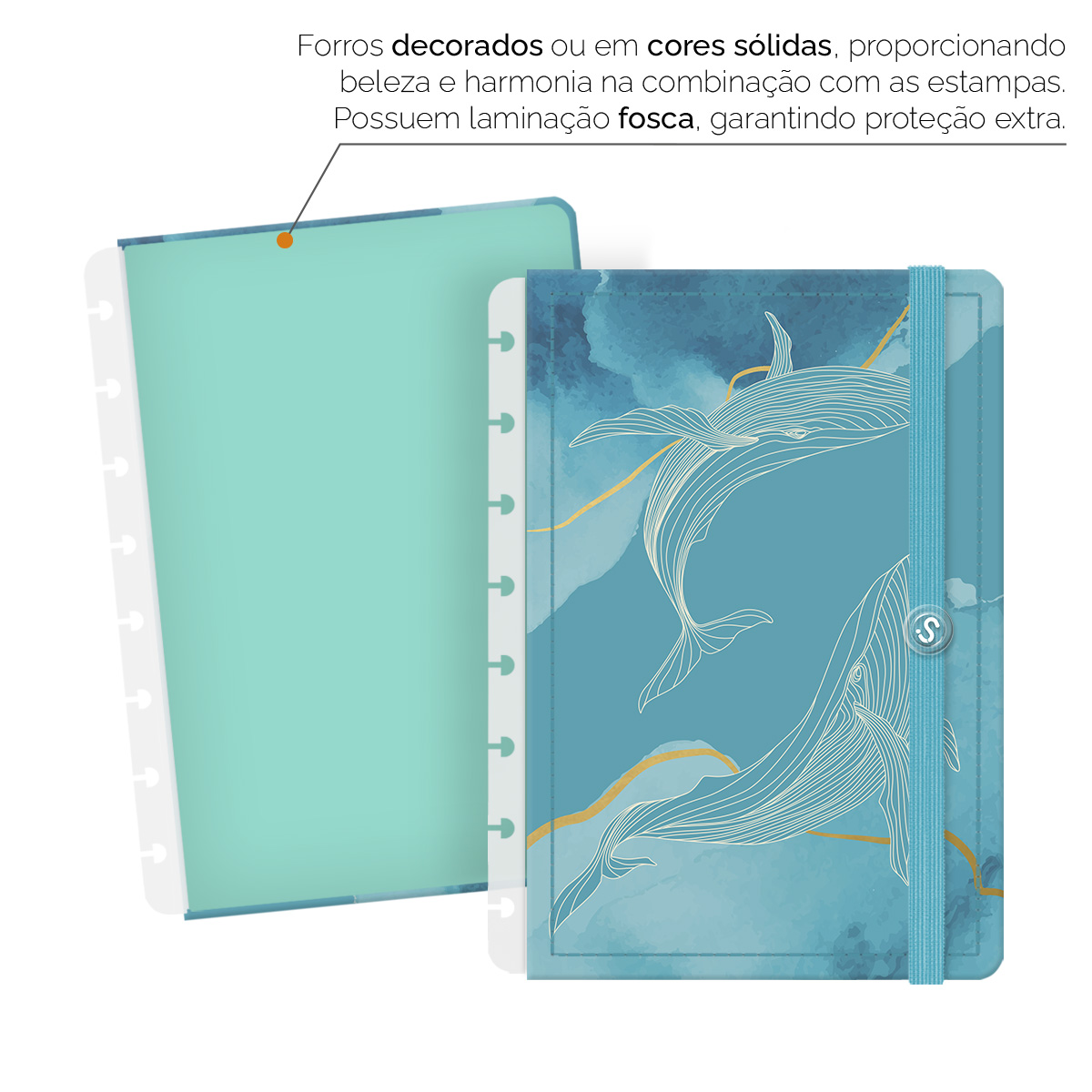 - Forros decorados ou em cores sólidas, com laminação fosca, garantem proteção extra.