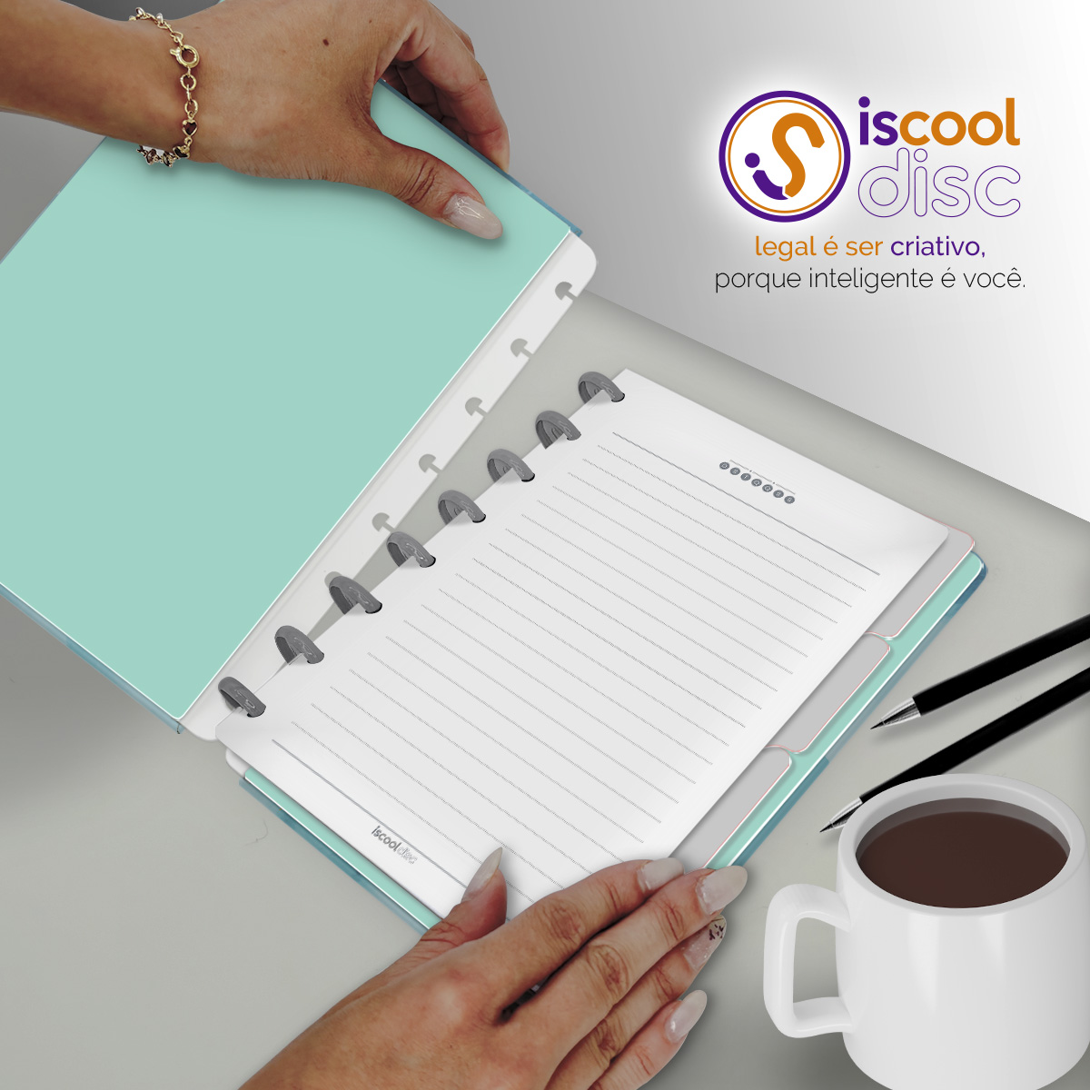 Com furos no formato de "cogumelo", é compatível com outros fabricantes de cadernos de disco, inclusive da marca Caderno Inteligente®.