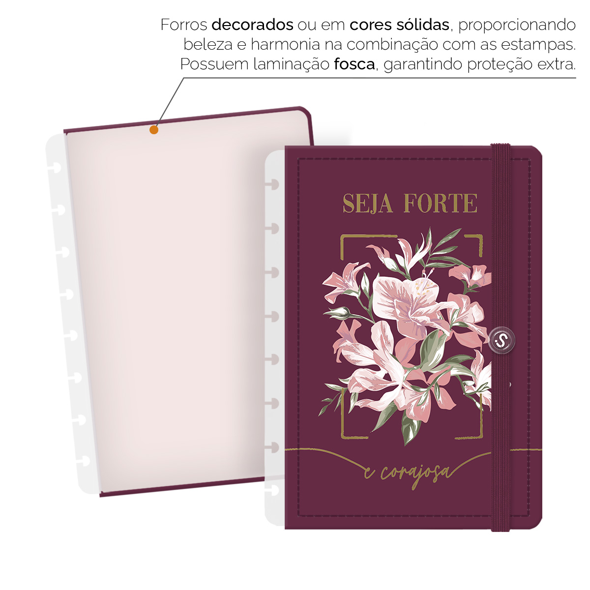 - Forros decorados ou em cores sólidas, com laminação fosca, garantem proteção extra.