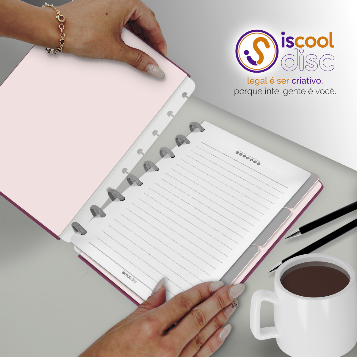 Com furos no formato de "cogumelo", é compatível com outros fabricantes de cadernos de disco, inclusive da marca Caderno Inteligente®.