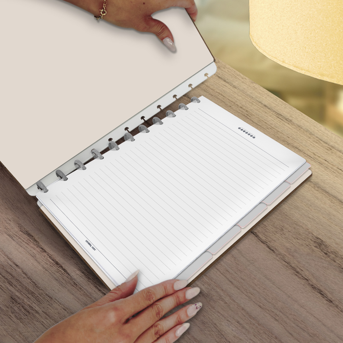 Com furos no formato de "cogumelo", é compatível com outros fabricantes de cadernos de disco, inclusive da marca Caderno Inteligente®.