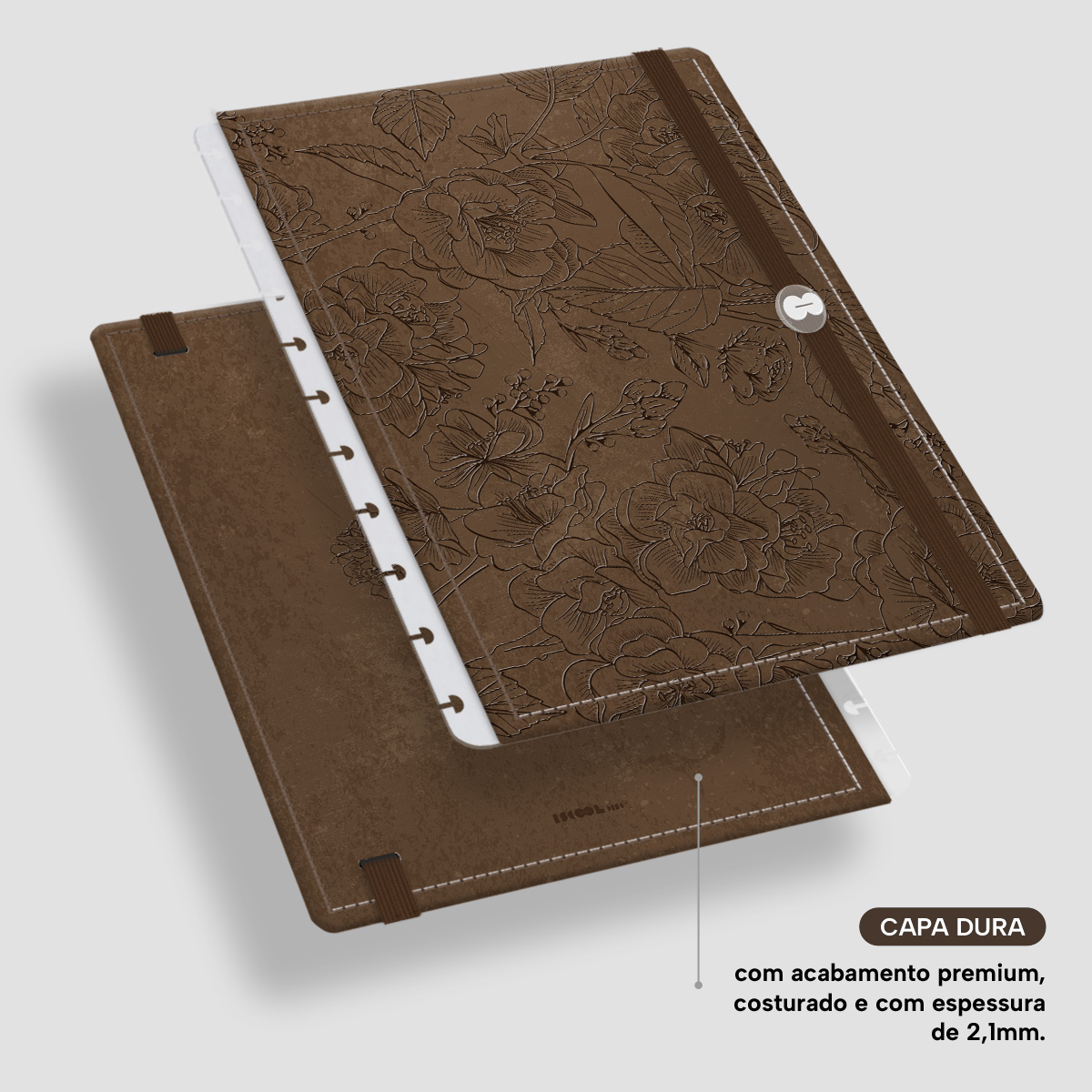 - Capa dura com acabamento premium, costurada e com espessura de 2,1 mm.