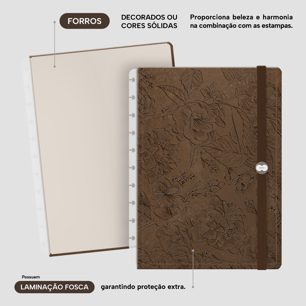 - Forros decorados ou em cores sólidas, com laminação fosca, garantem proteção extra.