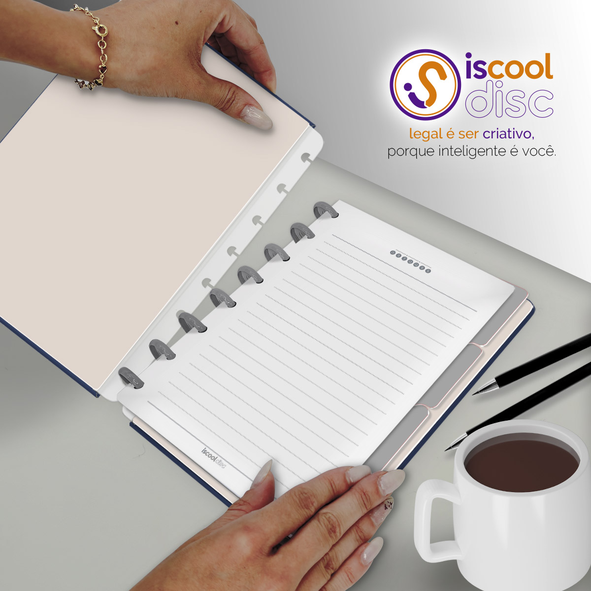 Com furos no formato de "cogumelo", é compatível com outros fabricantes de cadernos de disco, inclusive da marca Caderno Inteligente®.