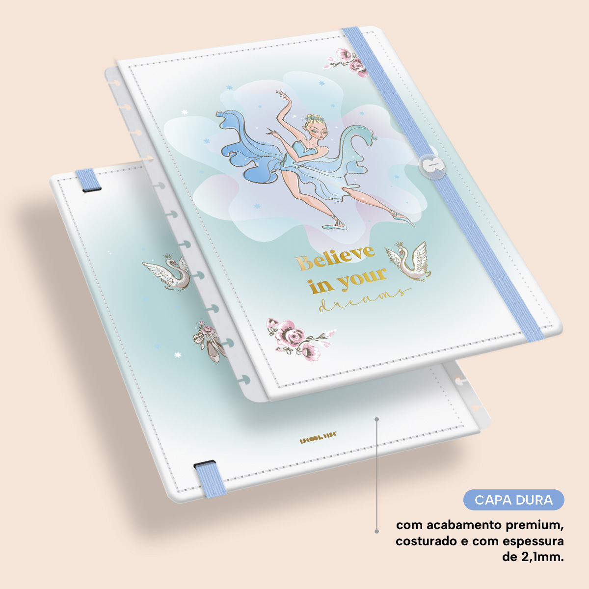 - Capa dura com acabamento premium, costurada e com espessura de 2,1 mm.
