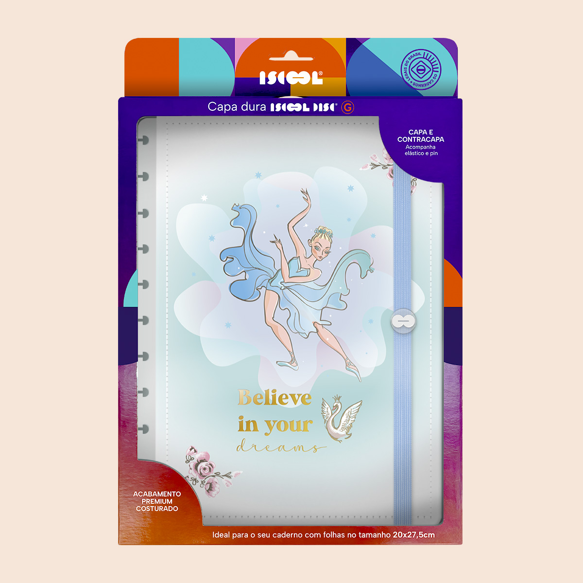 Com as capas Iscool Prime, você pode renovar a “cara” do seu caderno de disco sempre que desejar! A caixa inclui capa e contracapa, além de extras que fazem toda a diferença: elástico para fechamento da capa, folha de dados e calendário.