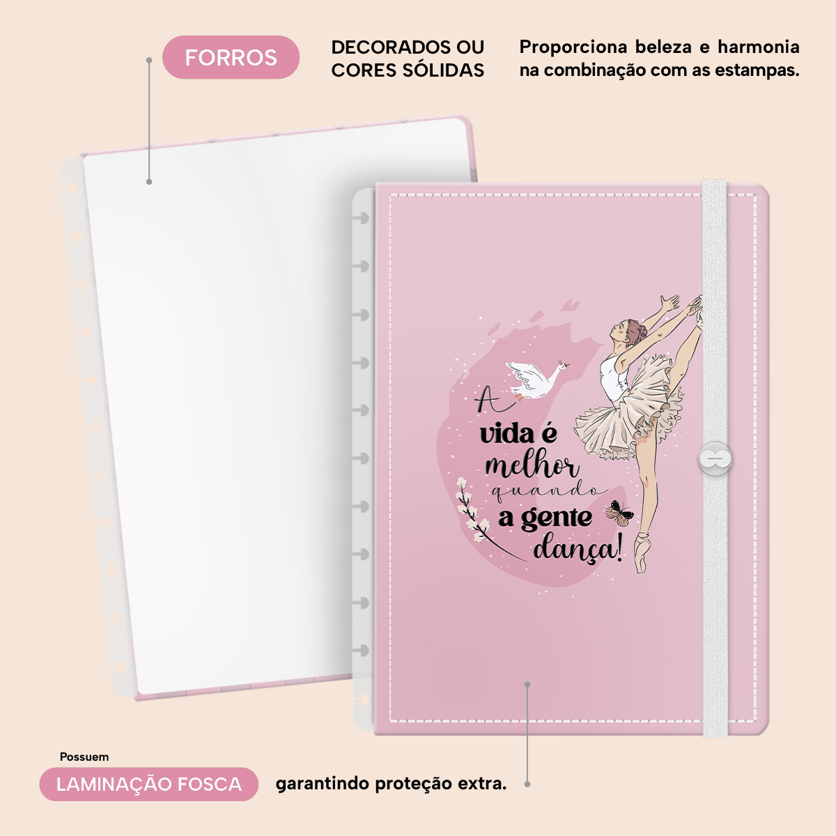- Forros decorados ou em cores sólidas, com laminação fosca, garantem proteção extra.