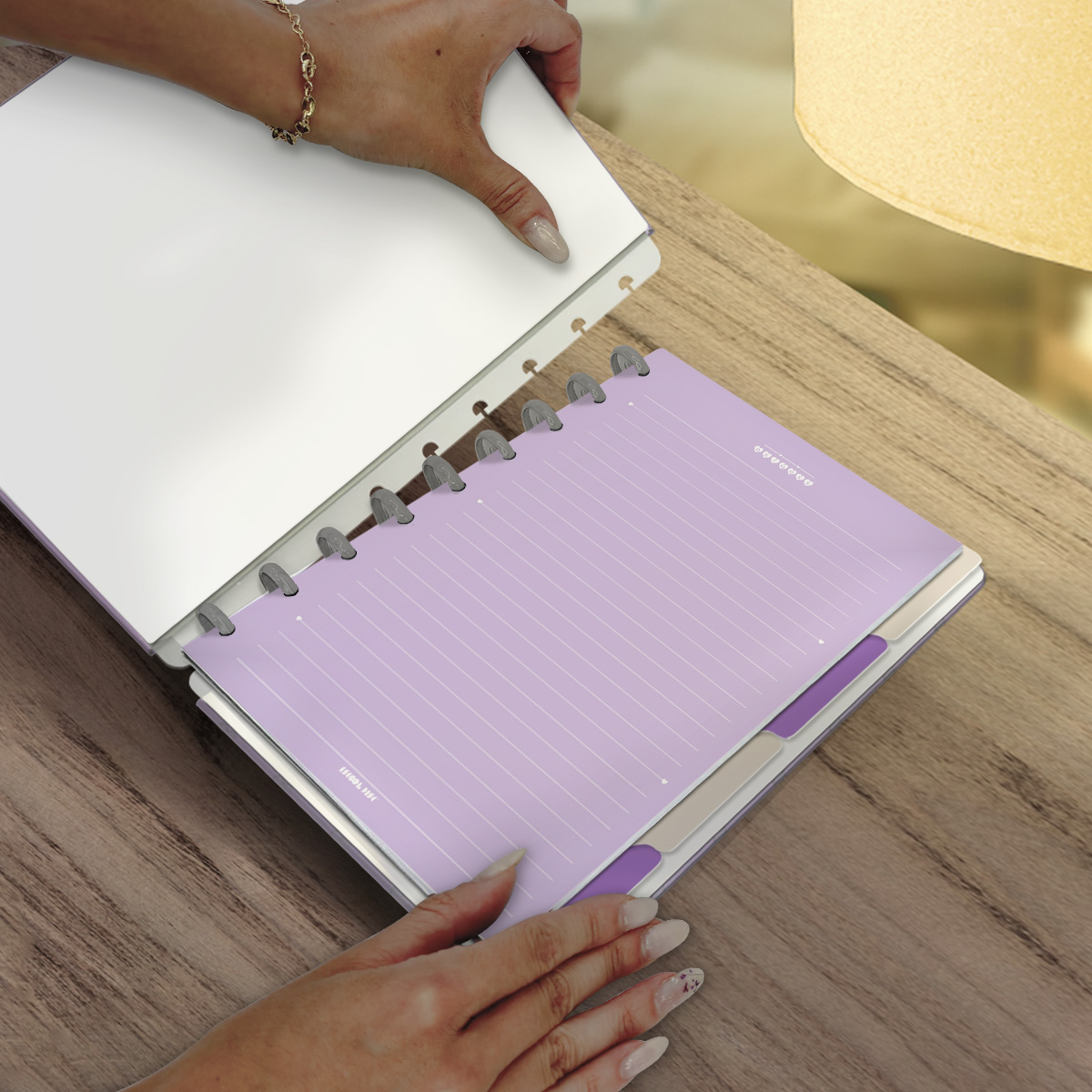 Com furos no formato de "cogumelo", é compatível com outros fabricantes de cadernos de disco, inclusive da marca Caderno Inteligente®.