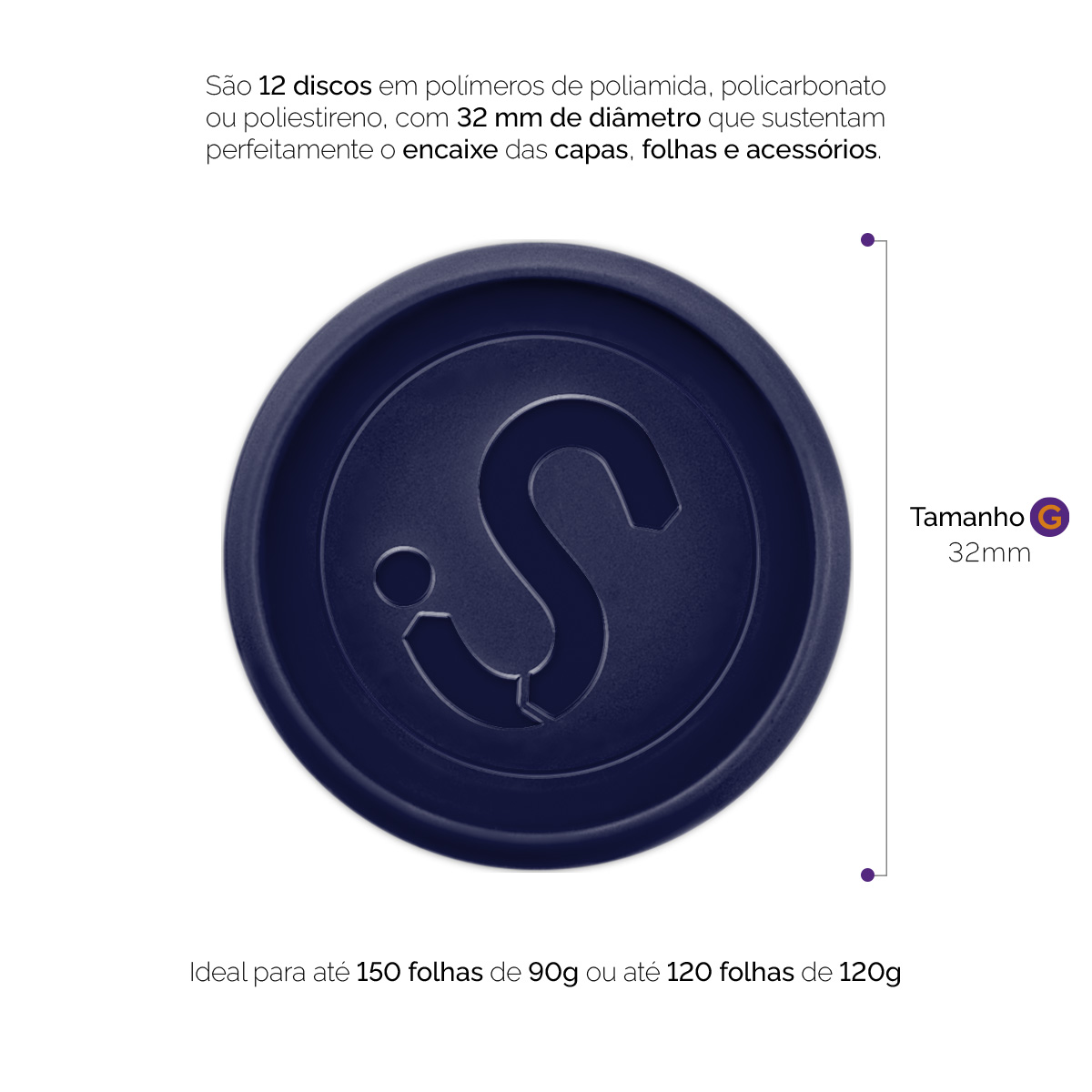 Com os discos iscool, você possui infinitas possibilidades para personalizar o seu caderno de disco com nossa ampla gama de cores e duas opções de tamanho.