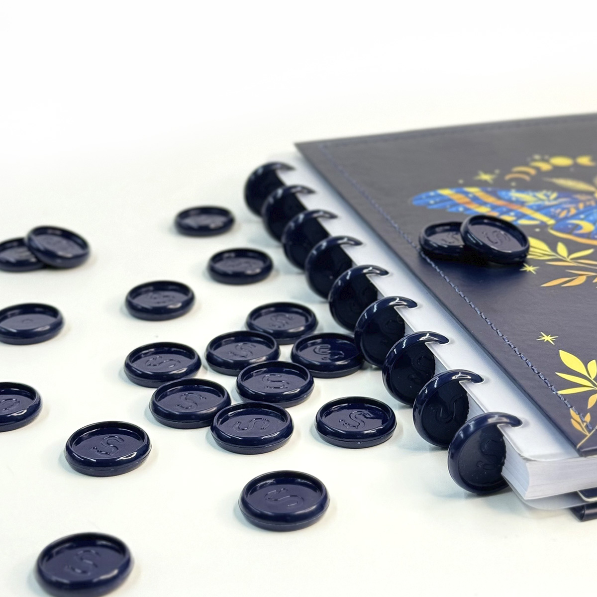 Os nossos discos de 23 mm suportam até 80 folhas de 90 g ou 60 folhas de 120 g e são compatíveis com outros fabricantes de cadernos de disco, inclusive da marca Caderno Inteligente®.