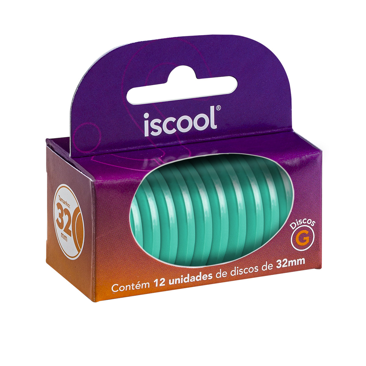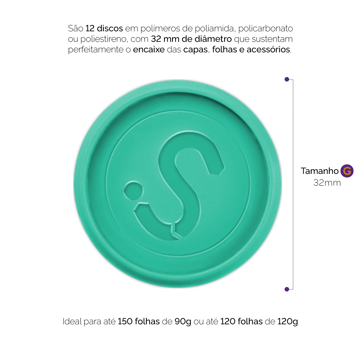 A embalagem contém 12 discos tamanho “M” com 23 mm de diâmetro, fabricados em polímero de poliamida, policarbonato e/ou poliestireno. Produto 100% nacional.