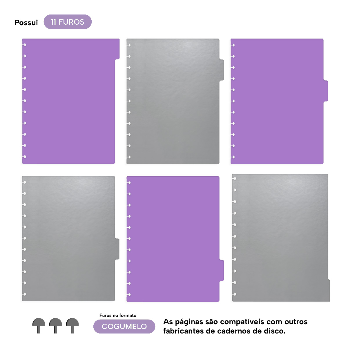 Divisórias Iscool P/ Caderno de Disco Solid Colors Lilás e Prata