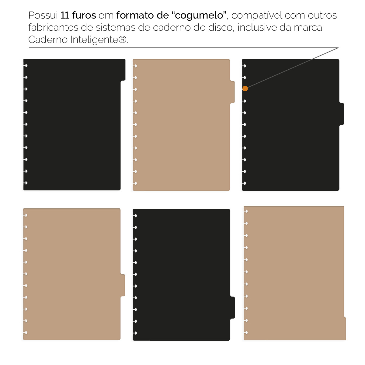Divisórias Iscool Para Caderno de Disco Solid Colors Preto e Nude