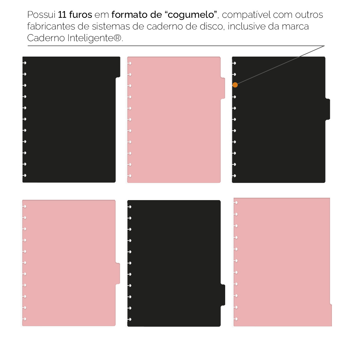 Divisórias Iscool Para Caderno de Disco Solid Colors Preto e Rosê