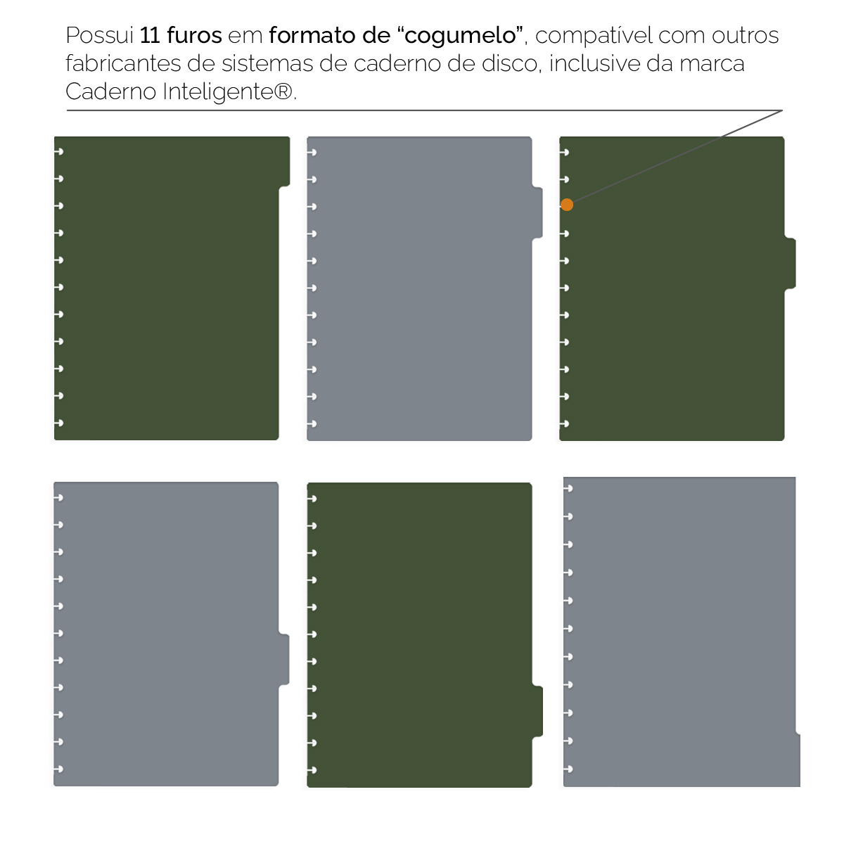 Divisórias Iscool Para Caderno de Disco Solid Colors Verde Militar e Grafite Claro