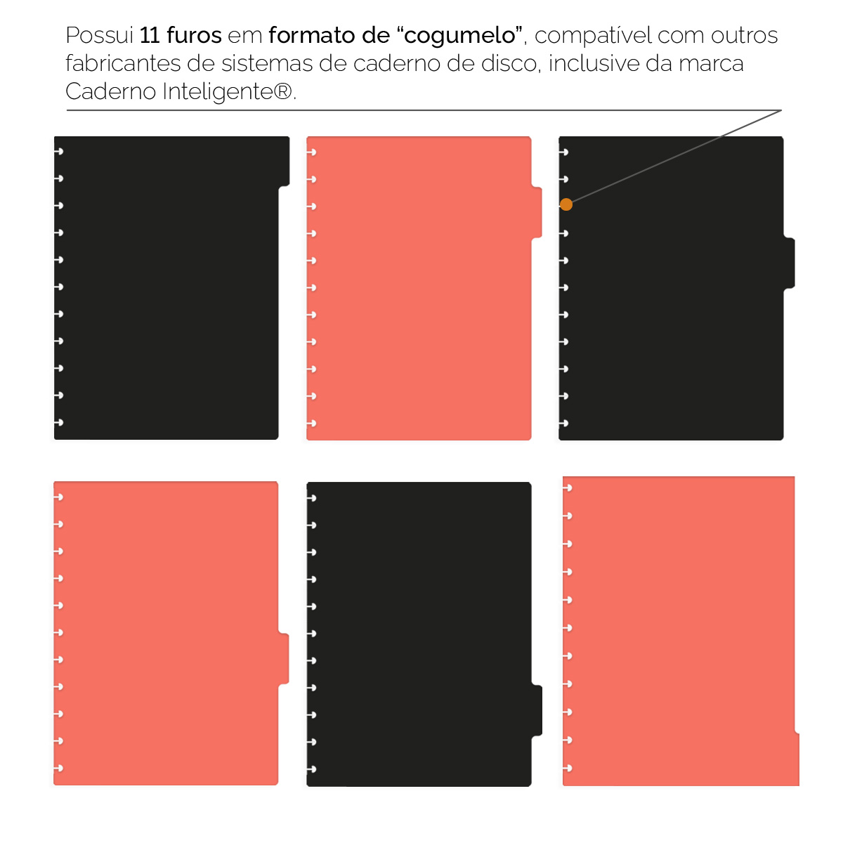 Divisórias Iscool Para Caderno de Disco Solid Fluor Preto e Laranja Fluor
