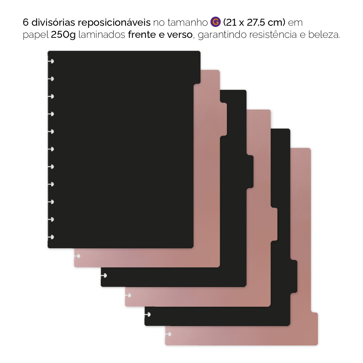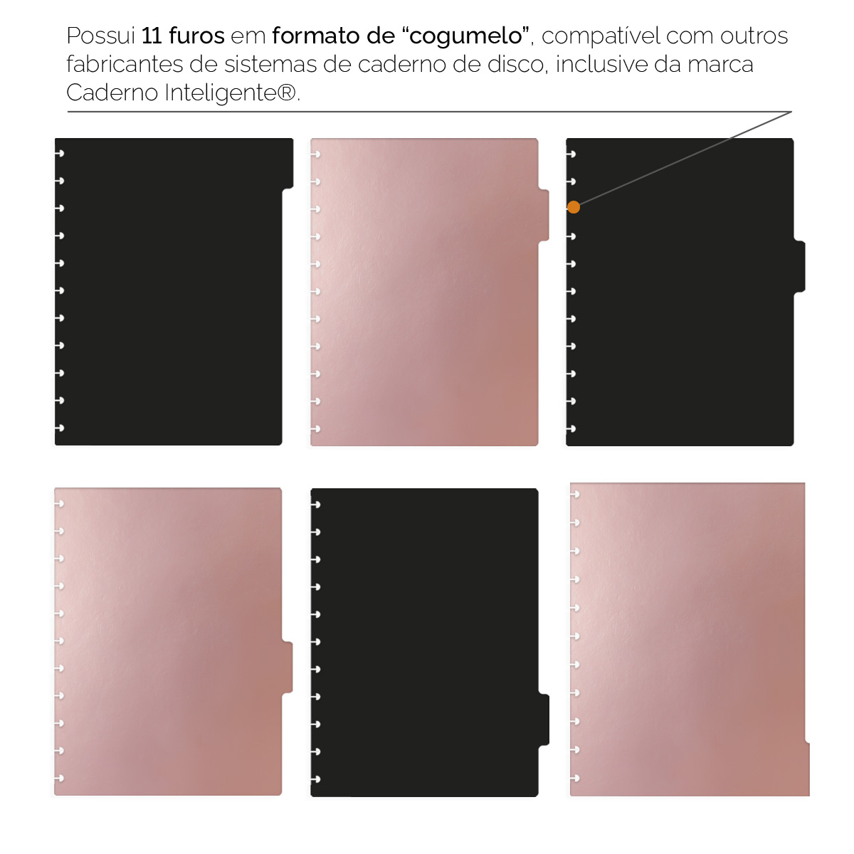 Divisórias Iscool Para Caderno de Disco Solid Metallic Preto e Rosê Gold